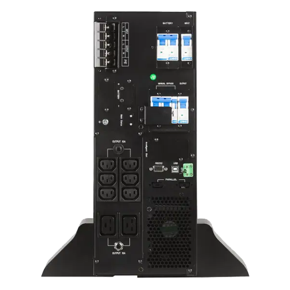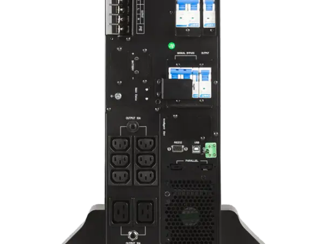 ЖК-панель управления - четко информирует о режиме работы, параметрах источника питания, остаточной автономности работы батареи, позволяет настроить параметры ИБП и диагностировать источник питания.