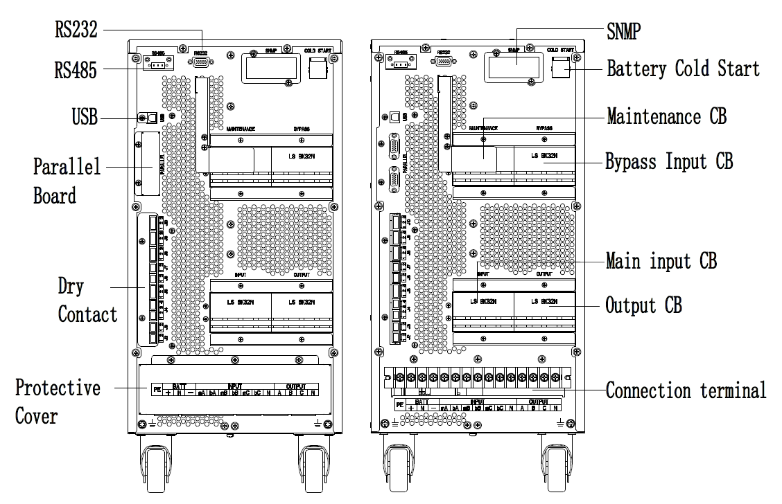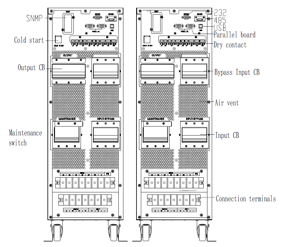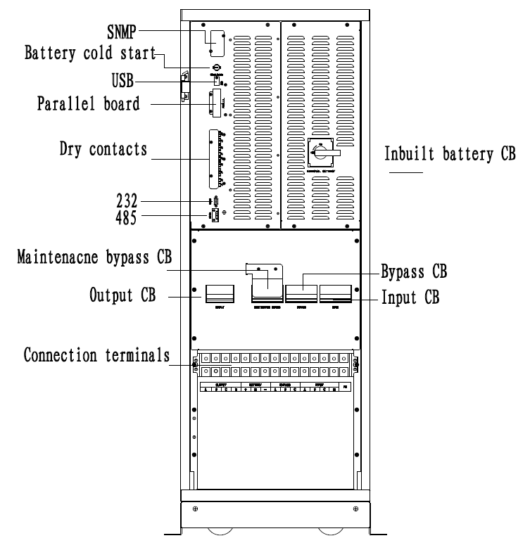 ИБП 40 кВА со встроенными АКБ, задняя панель