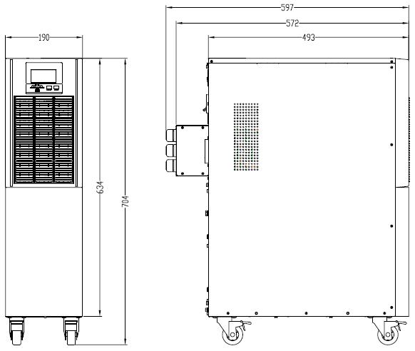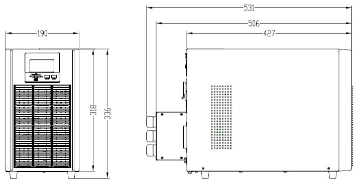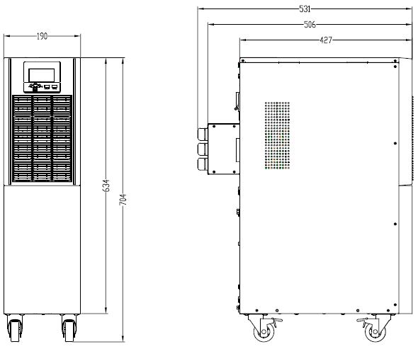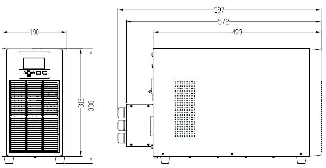Моделі з вбудованими батареями (1К - 10К) забезпечують безперебійне електроживлення протягом короткого часу (кілька хвилин), що дозволяє коректно завершити роботу обладнання або переключитися на альтернативні джерела живлення (генератор і т.д.) Збільшення часу автономної роботи для даних моделей можливо з допомогою установки додаткових зовнішніх батарейних модулів.