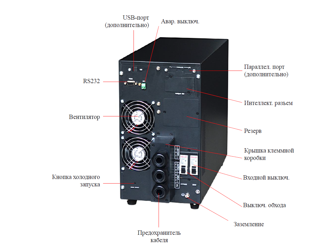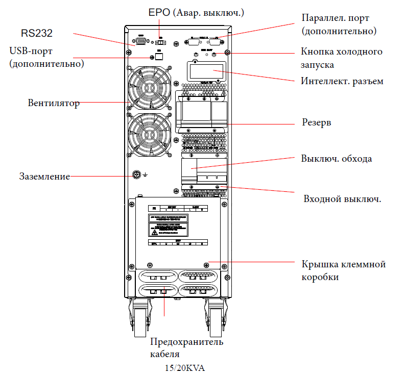 Вид ззаду моделей 1-3 кВА:
