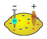 У навчальних експериментах цинк представлений оцинкованим цвяхом, а мідь — монетою; лимонний сік слугує електролітом, що запускає електрохімічну реакцію між металами.